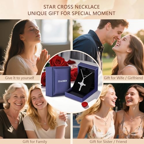 HOT ! 925 Sterling Silver Cross Necklace for Women,Birthday Delicate Star Cross Necklace Jewelry Gifts for Women,Birthstone Religious Jewelry for Mom, Chain 18 inch