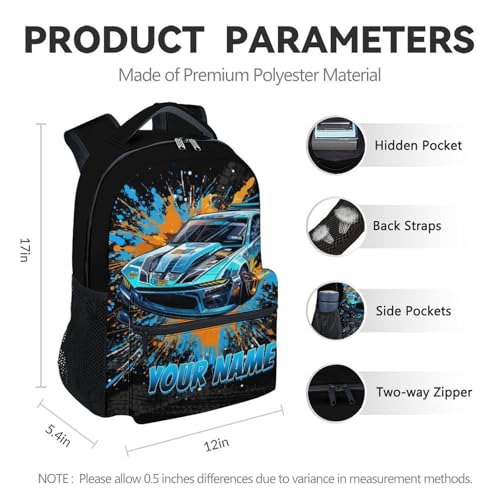• Custom Backpack: Click the "Customize Now" button with the option to customize it with the text you want to create a great backpack your child will love. Our custom car kids backpack is made of polyester, which is very durable