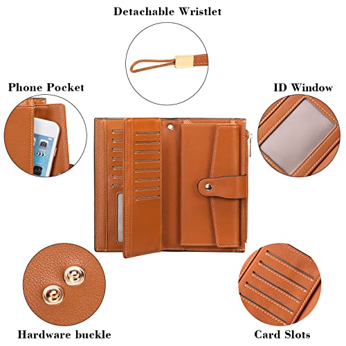 HOT ! Women's Wallet RFID Blocking Leather Bifold with Phone Pocket Credit Card Holder ID Slot Multi-Pocket Design Slim Clutch Purse for Women