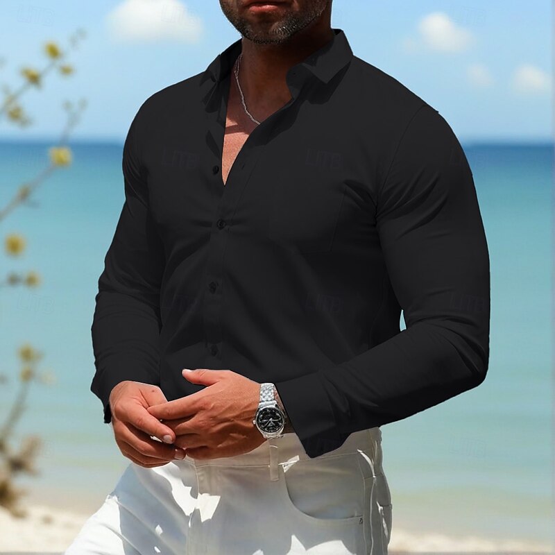 More information about Men's Casual Summer Shirt Homecoming Standard Fit Long Sleeve Lapel Solid Color Polyester Black White Pink 2025