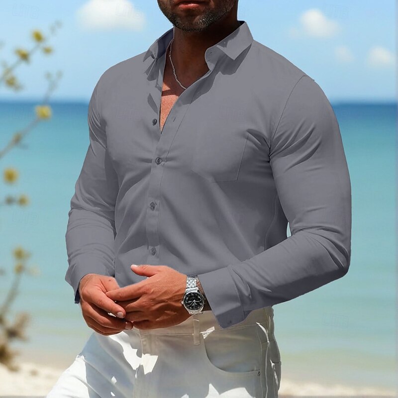 Men's Casual Summer Shirt Homecoming Standard Fit Long Sleeve Lapel Solid Color Polyester Black White Pink 2025 19