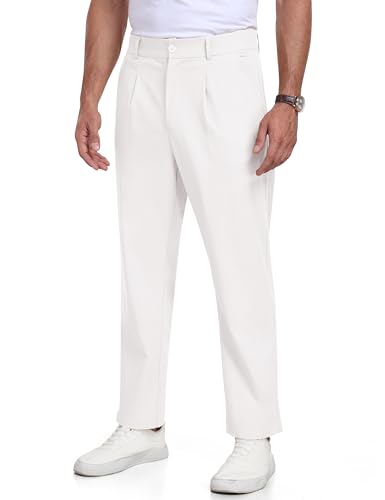MoFiz Mens Casual Golf Pants Classic Fit Linen Cotton Lightweight Work Dress Pants with Pockets 1