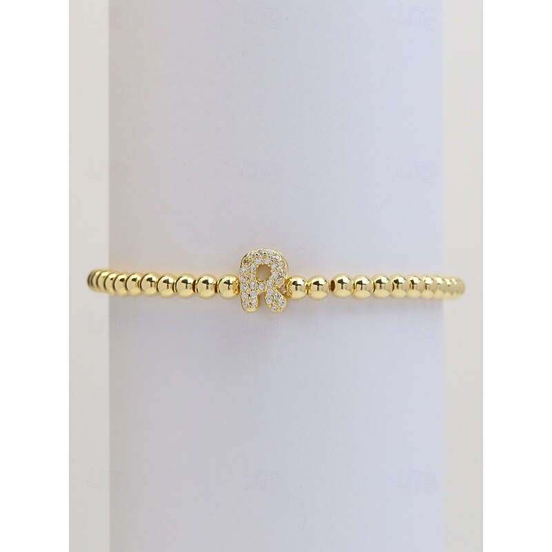 Women's Gold Beaded Initial Bracelet - Personalized Alphabet Charm Jewelry, Adjustable Elastic Stretch Design, Elegant Style, Suitable for Graduation Gifts, Birthdays and Daily Wear 18