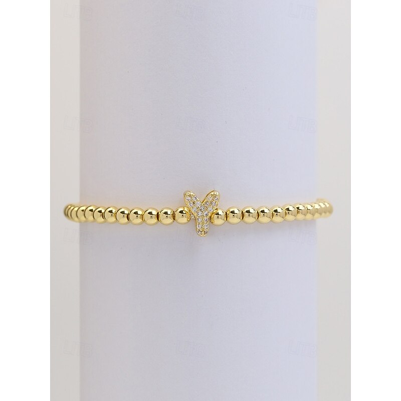 Women's Gold Beaded Initial Bracelet - Personalized Alphabet Charm Jewelry, Adjustable Elastic Stretch Design, Elegant Style, Suitable for Graduation Gifts, Birthdays and Daily Wear 56