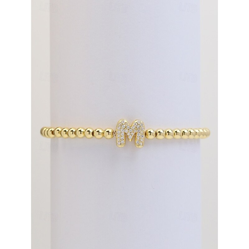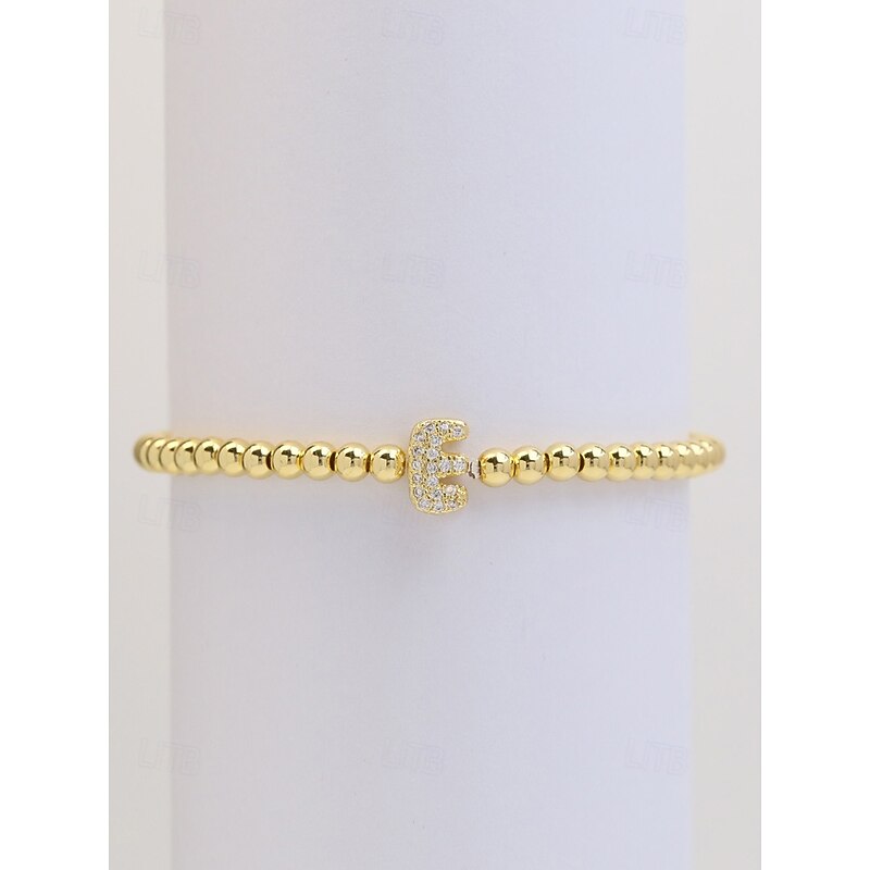 Women's Gold Beaded Initial Bracelet - Personalized Alphabet Charm Jewelry, Adjustable Elastic Stretch Design, Elegant Style, Suitable for Graduation Gifts, Birthdays and Daily Wear 1