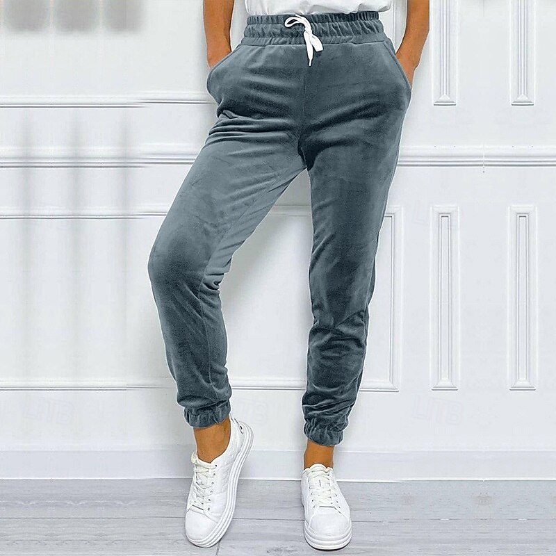 HOT ! Women's Corduroy Pants Slacks Straight Streetwear Casual Full Length Natural Plain Pocket Elastic Drawstring Design Soft Outdoor Vacation Street Depression Green Grey Black Purple Winter Regular Fit