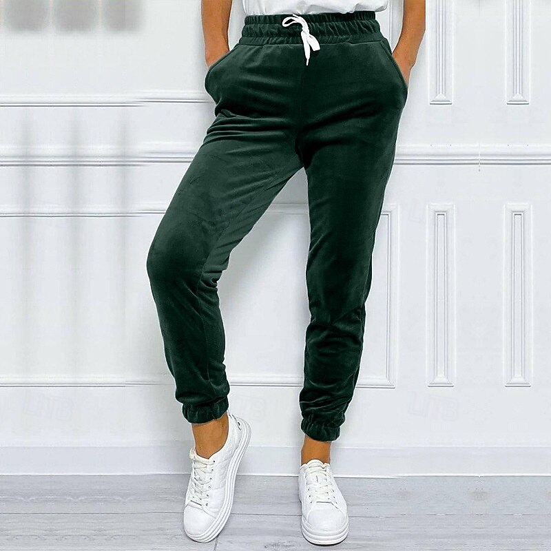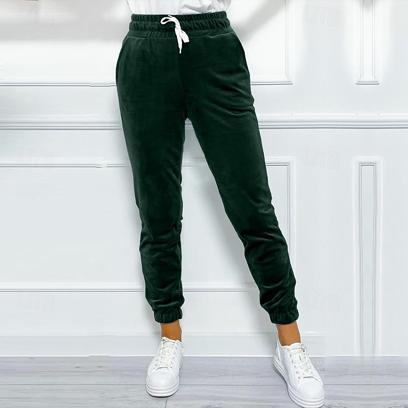 More information about Women's Corduroy Pants Slacks Straight Streetwear Casual Full Length Natural Plain Pocket Elastic Drawstring Design Soft Outdoor Vacation Street Depression Green Grey Black Purple Winter Regular Fit