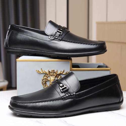 HOT ! Penny Loafers for Men, Mens Driving Loafers, Dress Shoes Casual Slip On Leather Loafer, Black 12