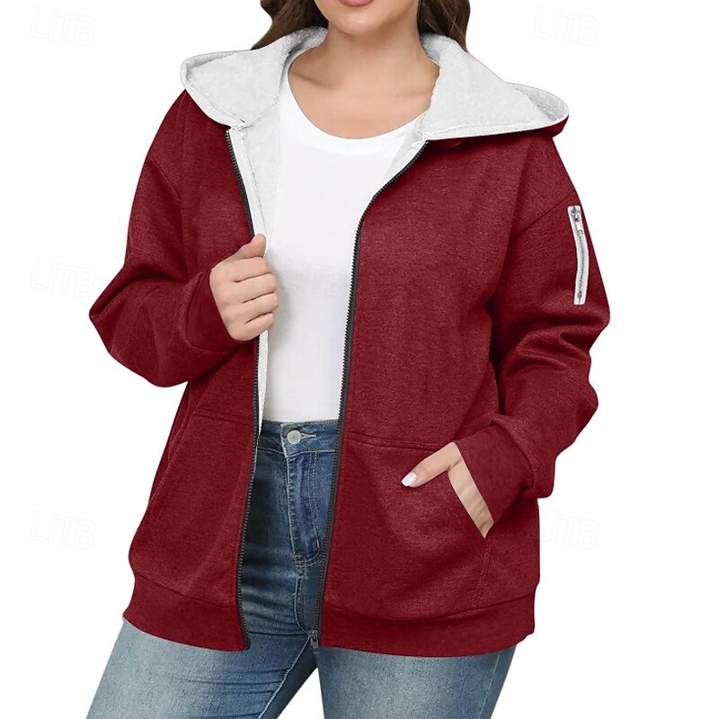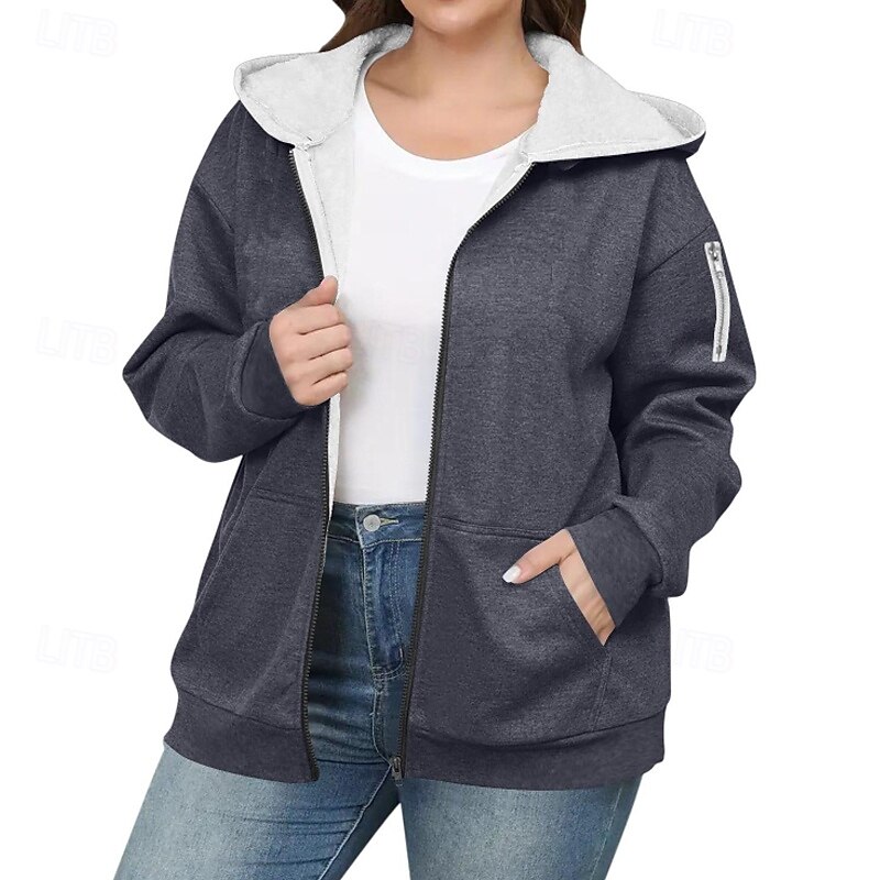 More information about Women's Zip Up Hoodies Plain Casual Long Sleeve Hooded Regular Tops Street Going out Zipper Pocket Black Wine Navy Blue Green Beige Fall Winter