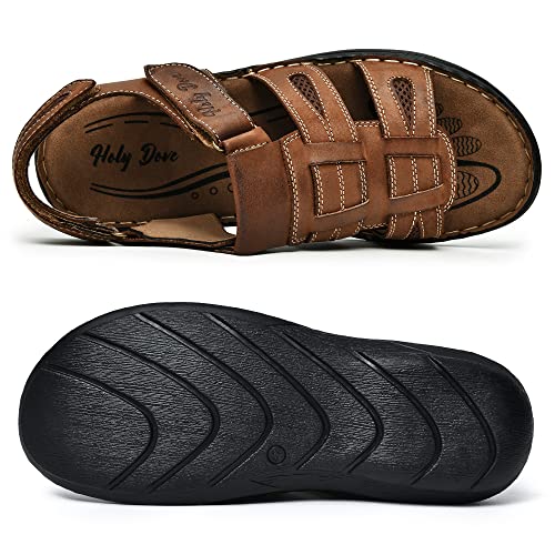 Holy dove Men's Sandals Open Toe Athletic Leather Fisherman Sport Hiking Casual Summer Sandals Shoes 5