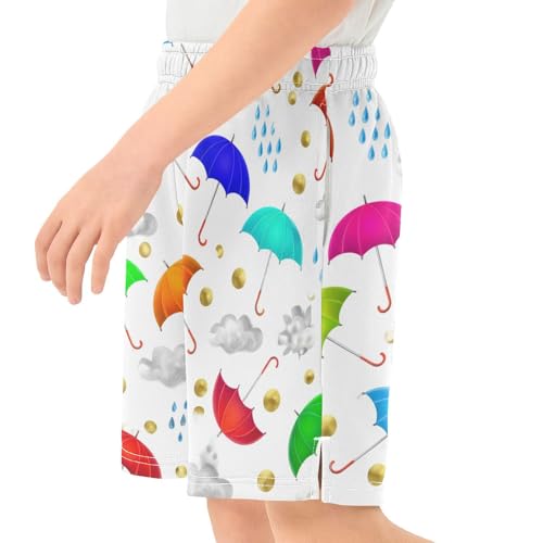 Umbrellas Athletic Shorts with Zipper Pockets, Youth Boys Athletic Running Shorts for Summer 2