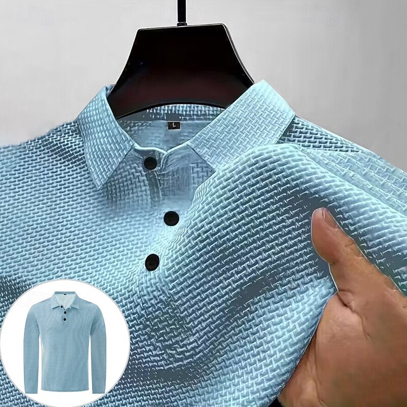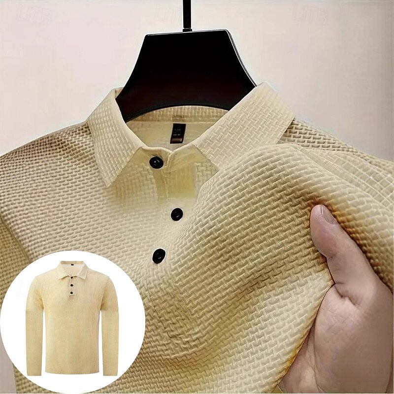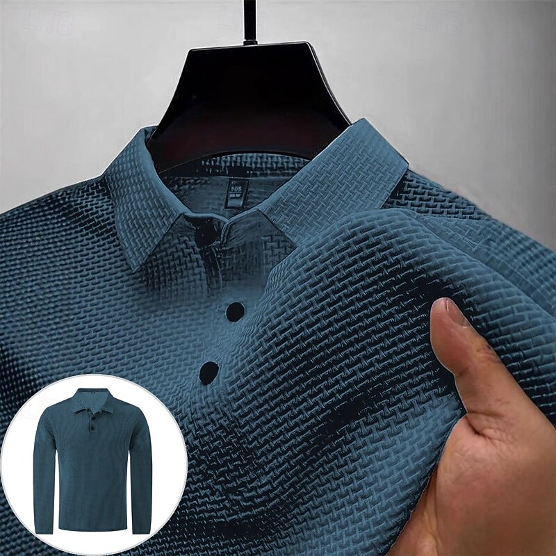 More information about Men's Golf Shirt Golf Polos Shirts Work Casual Lapel Long Sleeve Basic Modern Plain Jacquard Buttons Spring Fall Regular Fit Black White Wine Dark Navy Blue Green Golf Shirt