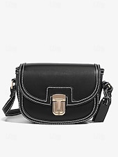 More information about Women's Crossbody Bag – Vintage Leather Trim Small Shoulder Purse with Buckle Closure – Beige and Brown, Ideal for Daily Use and Travel