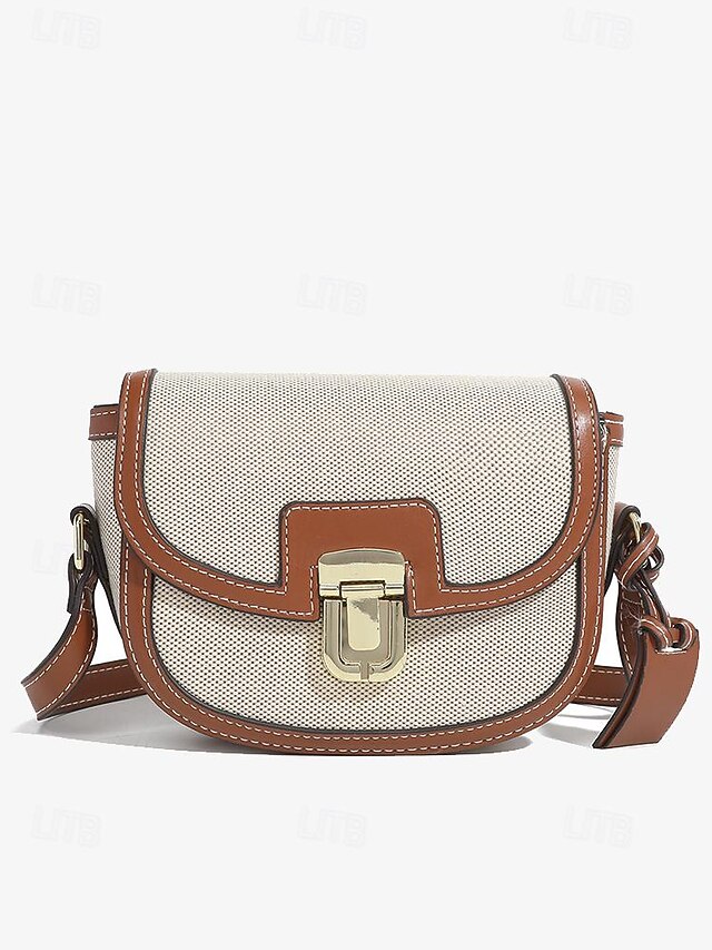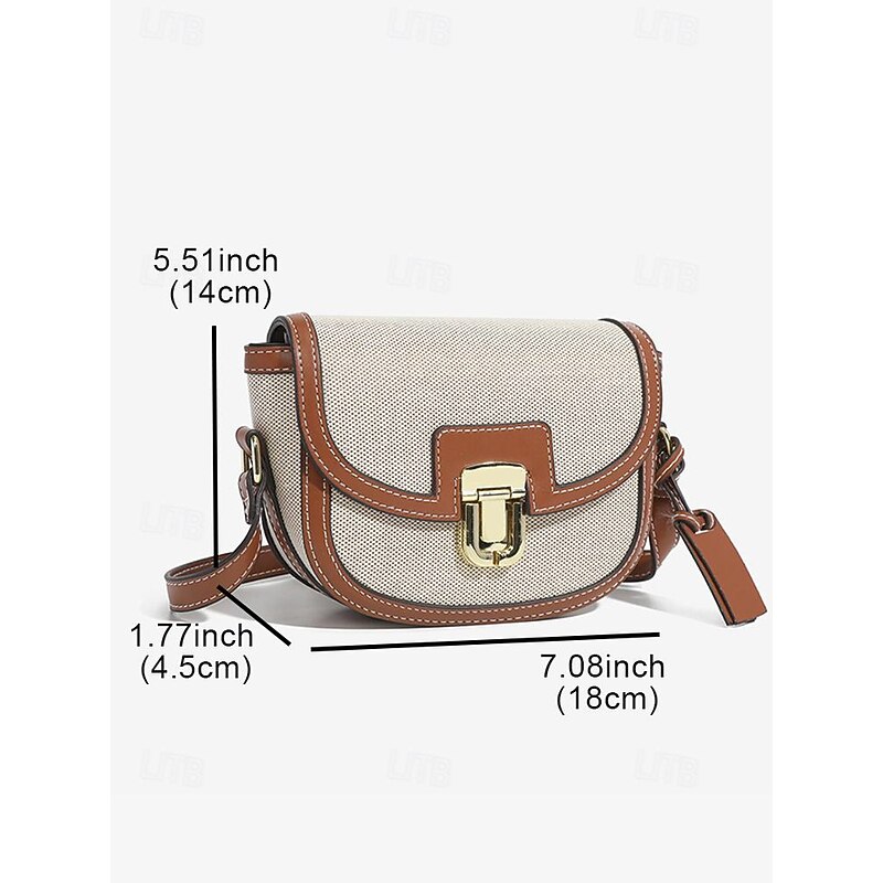 HOT ! Women's Crossbody Bag – Vintage Leather Trim Small Shoulder Purse with Buckle Closure – Beige and Brown, Ideal for Daily Use and Travel