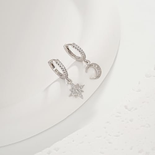 925 Sterling Silver Earrings for Women, Moon and Star Dangle Drop Hoop Earring Celestial Jewelry Gifts for Everyday Wear 4