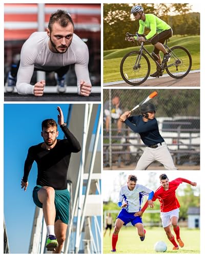 • Four-Way Stretch: Utilizing four-way stretch technology, this long sleeve workout compression shirts for men snugly conforms to your skin, offering stable support and helping reduce muscle fatigue. Whether you're running, working out in the gym, or playing soccer, it provides additional protection, ensuring a pleasant and comfortable experience during physical activities.