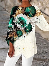 More information about Women's Blouse Long Sleeve Asymmetrical Hem Ombre Floral Graphic Vintage Tropical Stylish 3/4 Length Sleeve Crew Neck Regular Tops Daily Print Blue Green Spring Fall