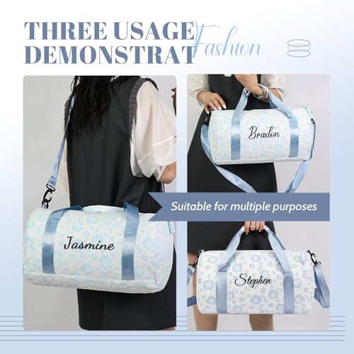 HOT ! Custom Duffle Bag with Embroidered Name,Personalized Quilted Floral Travel Bag Foldable Dance Gym Gift for Women