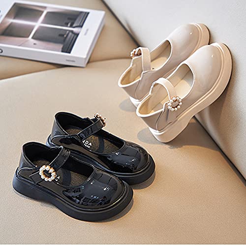 Girl's Classic Mary Jane School Uniform Shoes Flat Dress Shoes Pearl Strap Princess Dress Shoe 5
