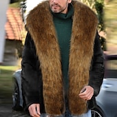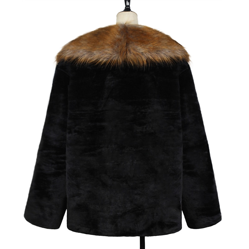 More information about Men's Winter Coat Winter Jacket Faux Fur Coat Outdoor Daily Wear Warm Fall Winter Color Block Fashion Streetwear Lapel Regular Black Jacket