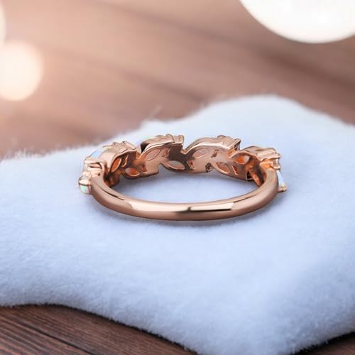 Antique Marquise Cut Opal Wedding Band, Unique Rose Gold Half Eternity Stack Band, Vintage Moissanite Wedding Ring, Custom Bridal Promise Ring - Handmade Vintage Jewelry Set for Women 5