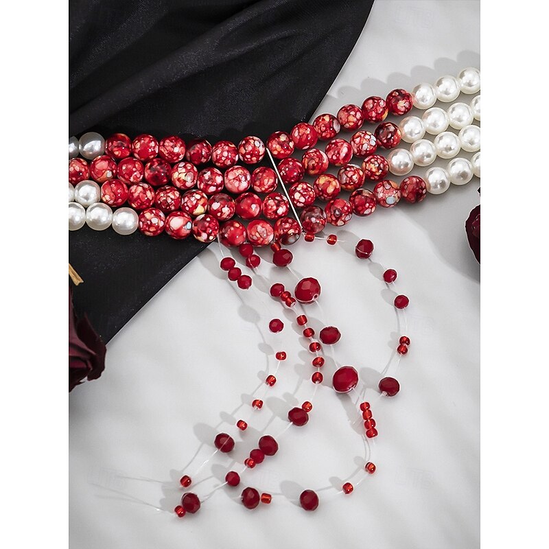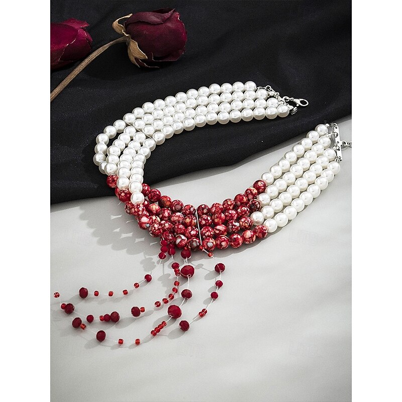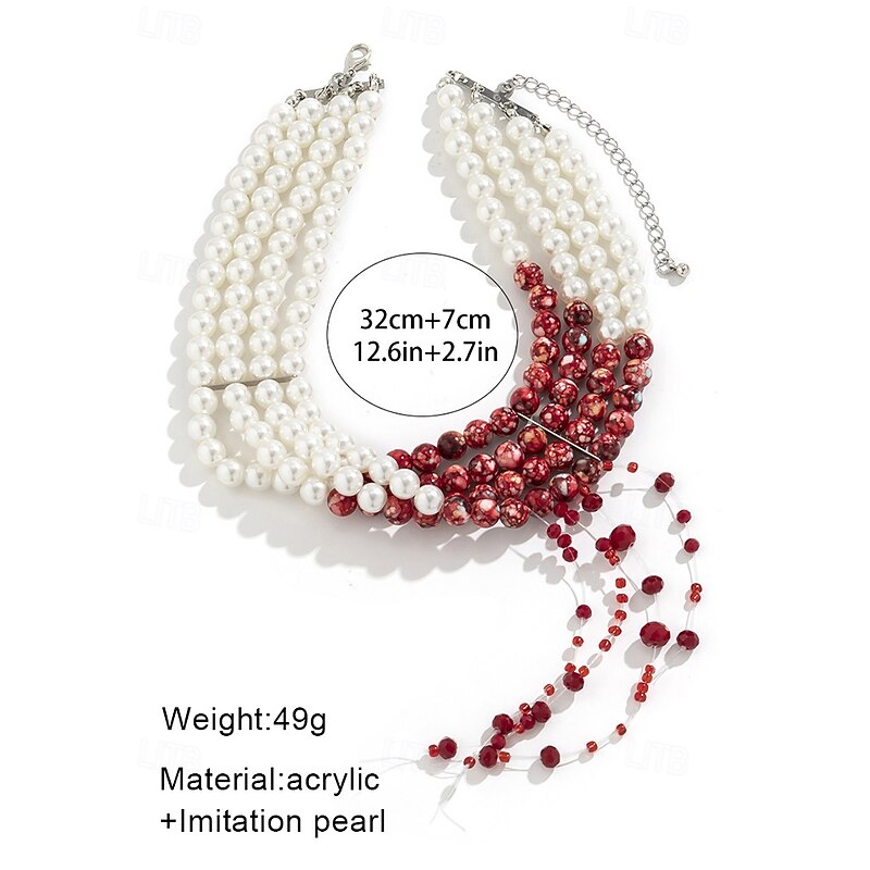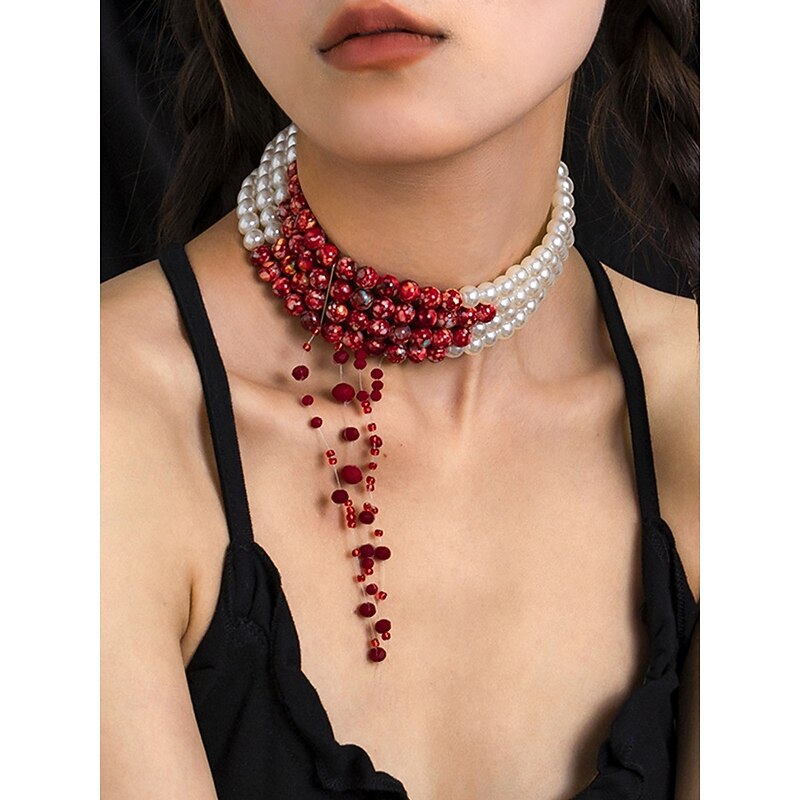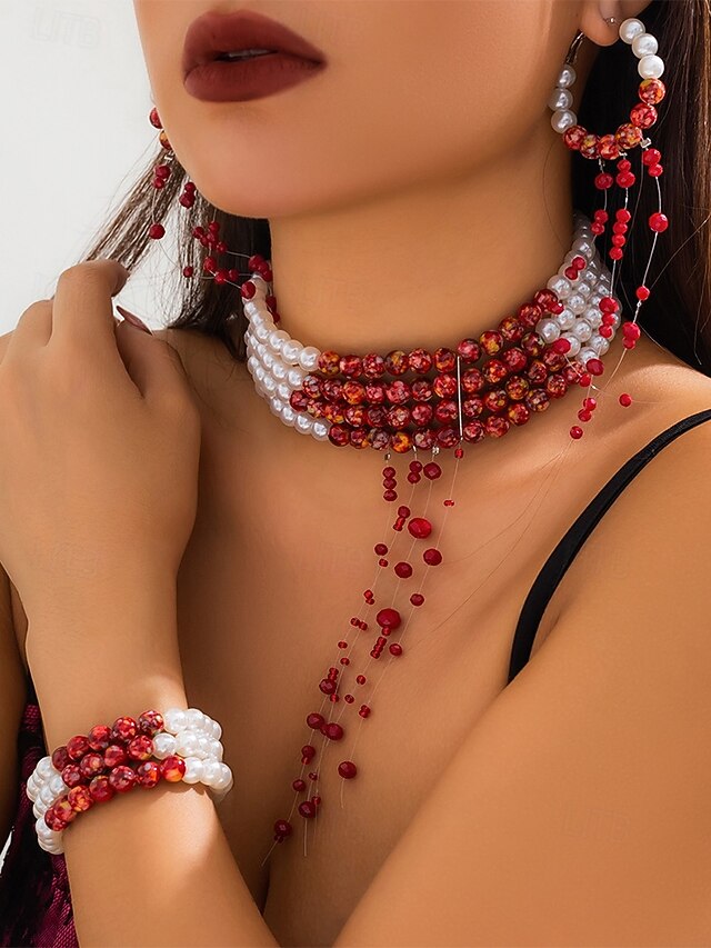 $18.99 - Women's Halloween Blood Drip Jewelry Set – Pearl and Red Bead Choker, Bracelet and Earrings for Costume Parties and Spooky Events 2025. Shop for cheap Halloween Accessories online? Buy at lightinthebox.com on sale today!