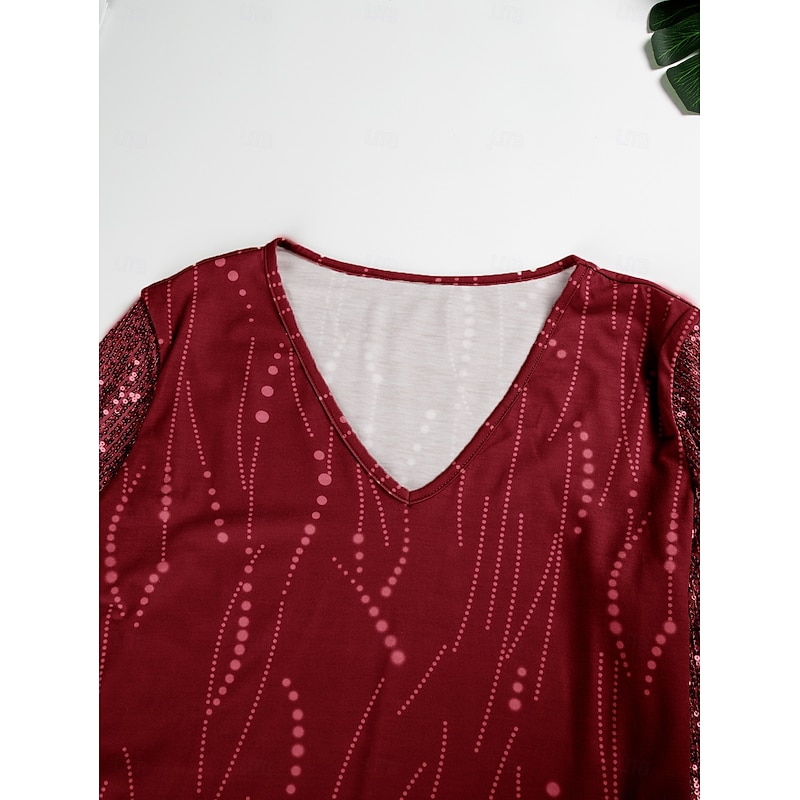 More information about Women's Shirt Blouse Metallic Basic Sparkly Print Long Sleeve Regular Tops V Neck Party New Year Yellow Gray Spring Fall