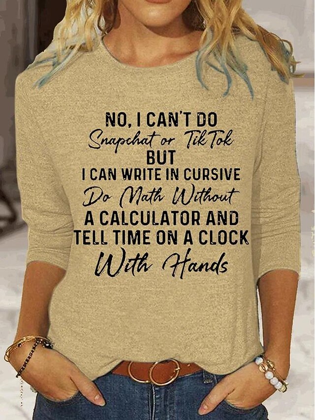 More information about Women's T shirt Long Sleeve Letter Behavior Fashion Long Sleeve Crew Neck Regular Tops Daily Print Black Pink Blue Green Khaki Spring & Fall Spring, Fall, Winter, Prefall