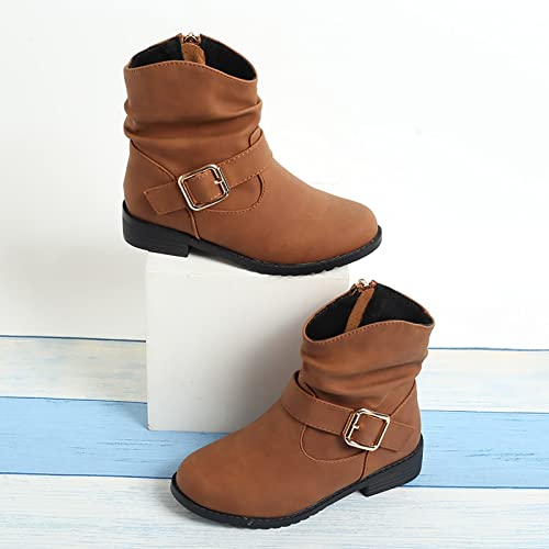 Girls Cowgirl Boots Kids Fashion Buckle Decor Western Riding Shoes Casual Booties Cowboy Boots with Side Zipper 6