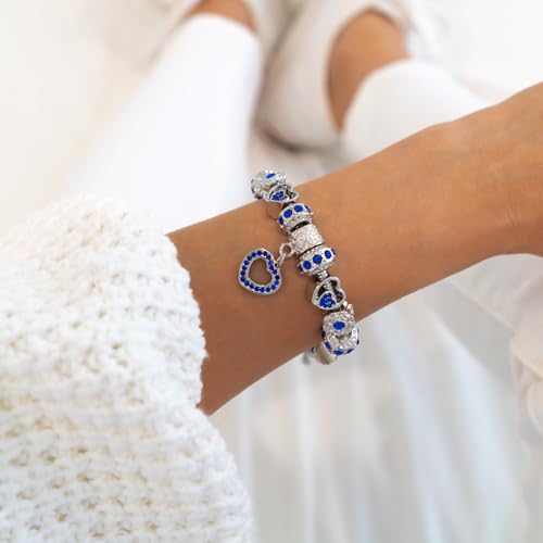 BELLA'S YARD Birthstone Bracelets, Gifts for her, Charm Bracelet for Women, 100% Stainless Steel, Water & Tarnish Resistant, Ideal Anniversary or Birthday Gift for Wife, Jewelry for Mom Girlfriend, 15 Charms Included - Adjustable, Includes Velvet Bag, Simulated Birthstone 7