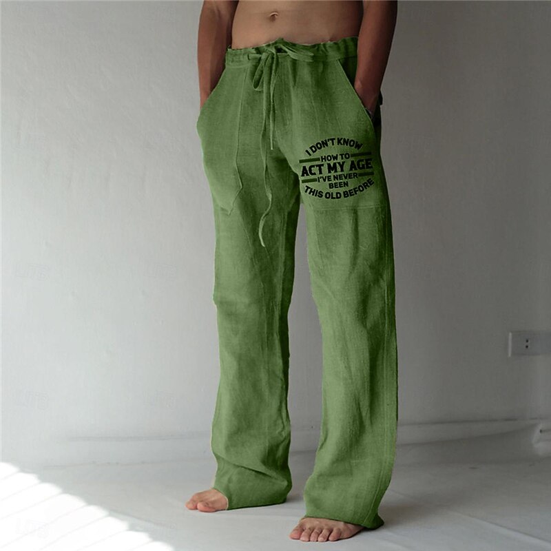 : Crafted from high-quality polyester, these men's trousers offer durability and comfort, perfect for warm spring and summer days. The breathable fabric ensures a relaxed, lightweight feel ideal for casual outings or lounging at home.