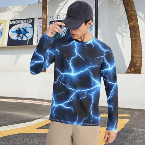 Bolaz Mens UV Protection Shirts Rash Guard Long Sleeve UPF 50+ Blue Lightning Quick Dry S 1