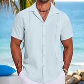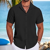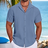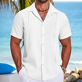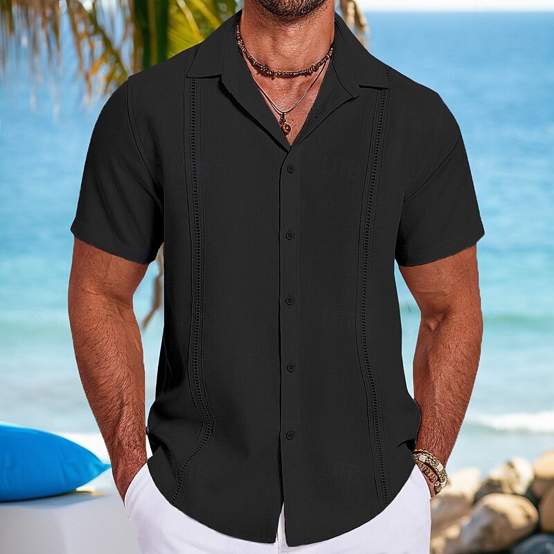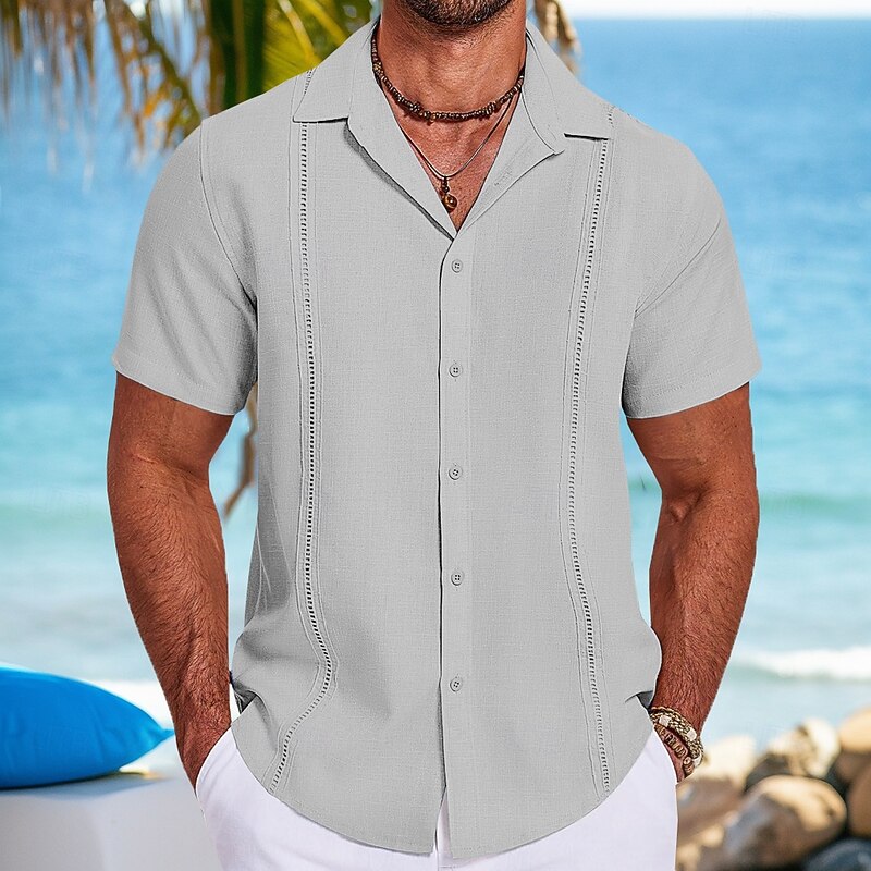 More information about Men's Shirt Linen Shirt Guayabera Shirt Summer Shirt Beach Shirt Plain Vacation Street Black White Navy Blue Gray Short Sleeve Fold-over Collar Spring & Summer Clothing Apparel Splice