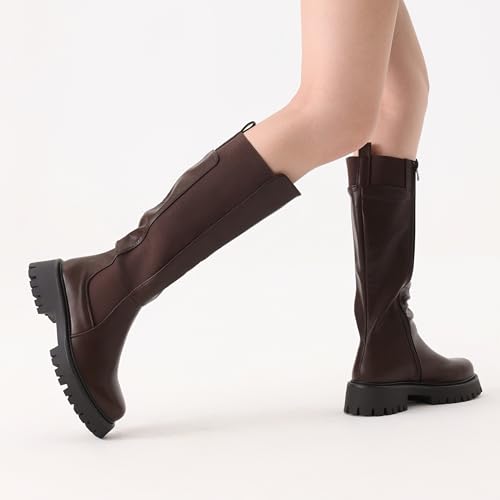 • Stylish Design: These knee high boots for women feature round toe, elastic gore and side zipper. The unique lug sole boots provide excellent support and traction, while the low heel strikes the perfect balance of comfort and style.