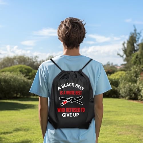 HOT ! A Black Belt Is A White Belt Who Refused to Give Up Drawstring Backpack For Men Women, Waterproof Sport Sackpack For Karate Lover, Funny Birthday String Gym Bag Gifts For Taekwondo Fan