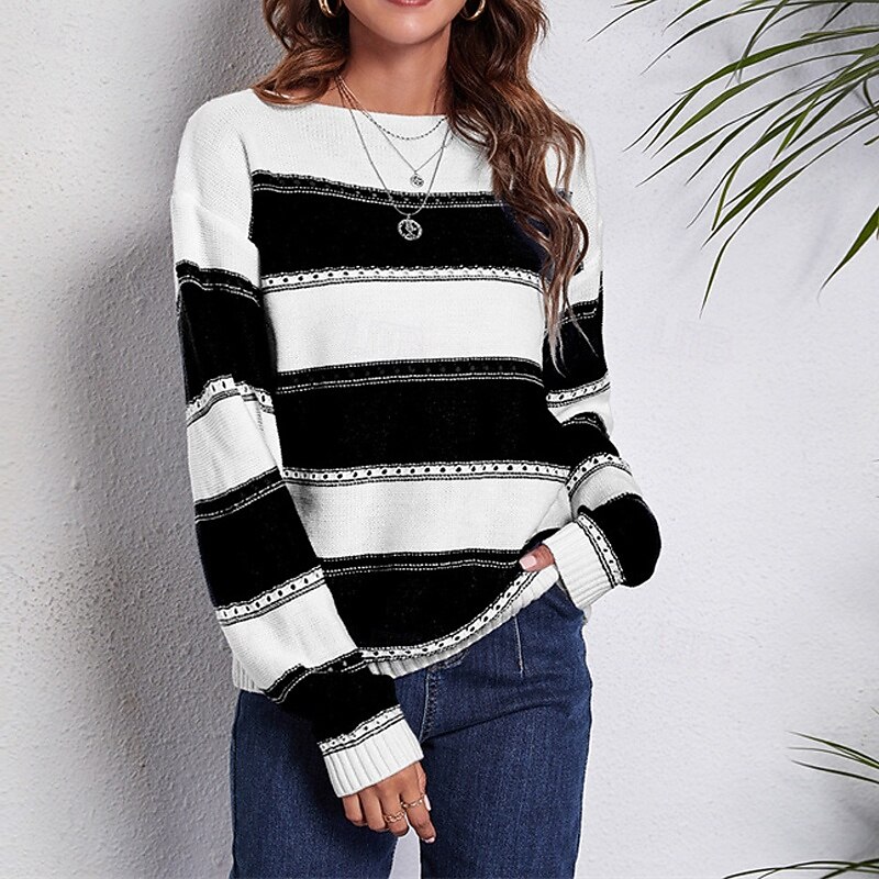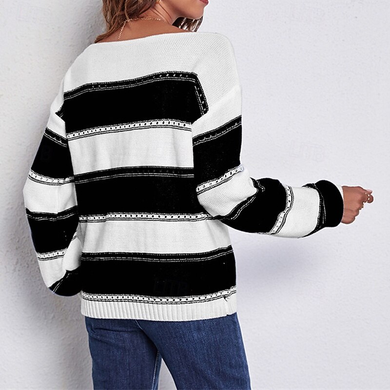 HOT ! Women's Pullover Casual Striped Chunky Off Shoulder Knitted Long Sleeve Regular Tops Knit Daily Holiday Going out Black Pink Fall Winter