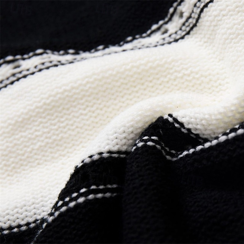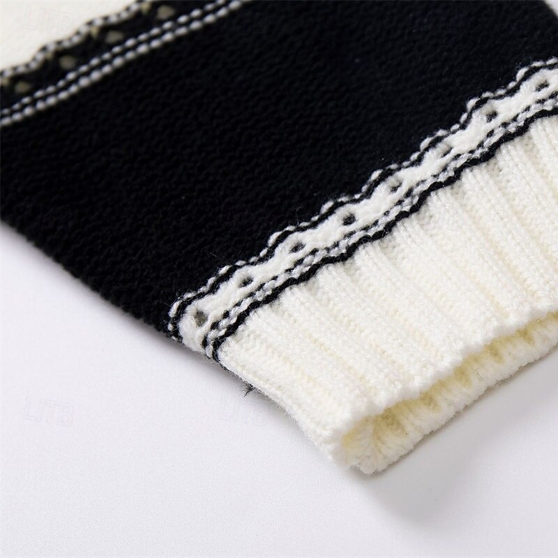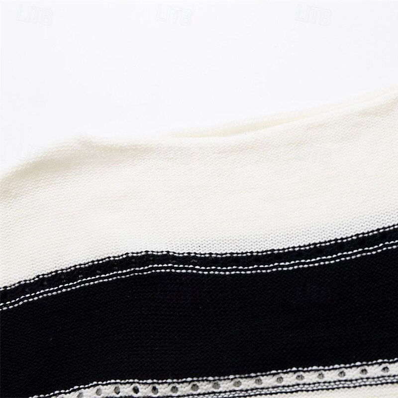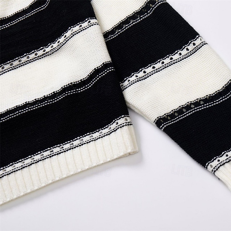 Women's Pullover Casual Striped Chunky Off Shoulder Knitted Long Sleeve Regular Tops Knit Daily Holiday Going out Black Pink Fall Winter 5