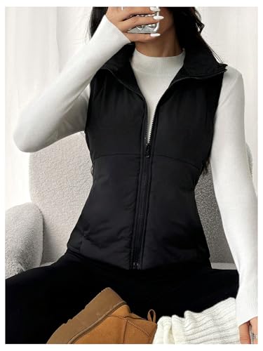 MakeMeChic Women's Zip Up Padded Vest Sleeveless Short Winter Coat Outerwear with Pocket 6