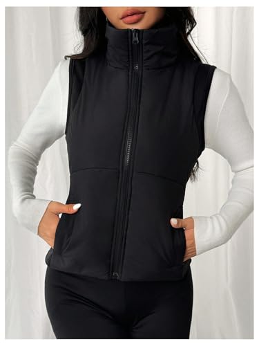 • Features: Solid color, zipper front, stand collar vest jacket for women