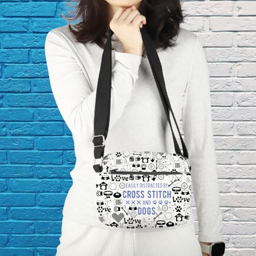 Cross Stitch & Dogs Lover Gift Cross Stitch Project Bag Easily Distracted By Cross Stitch & Dogs Crossbody Bag 5