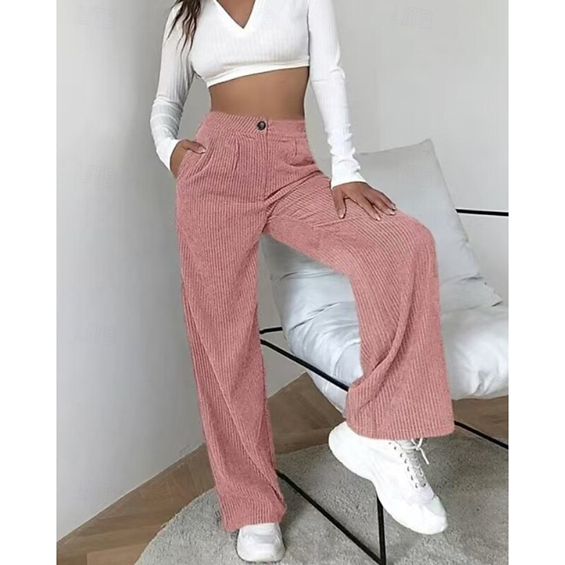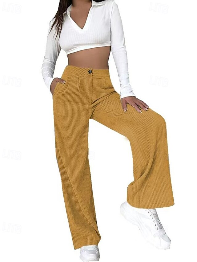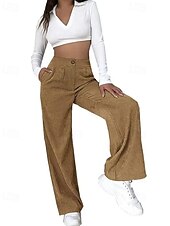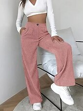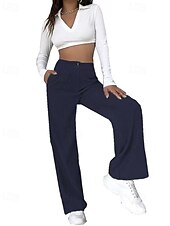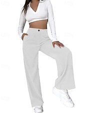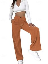 More information about Women's Wide Leg Slacks Streetwear Casual Full Length Natural Plain Pocket Elastic Waist Comfortable Holiday Daily Wear Weekend Dark-Gray Orange red rice white Black Fall Regular Fit