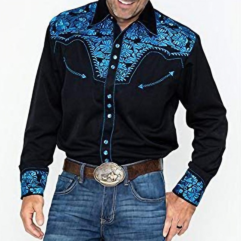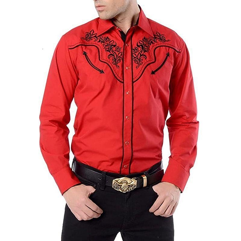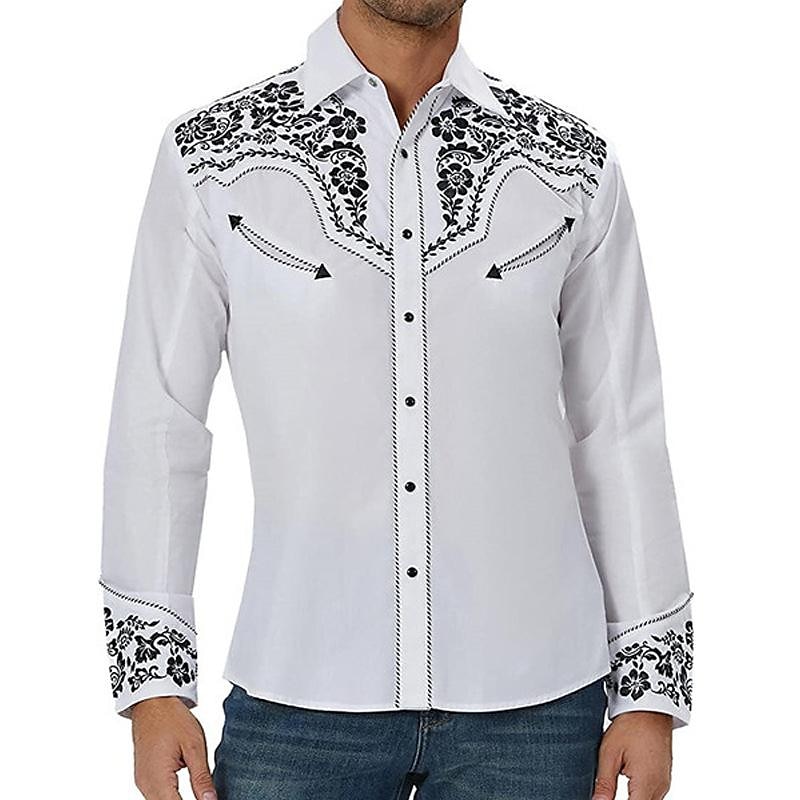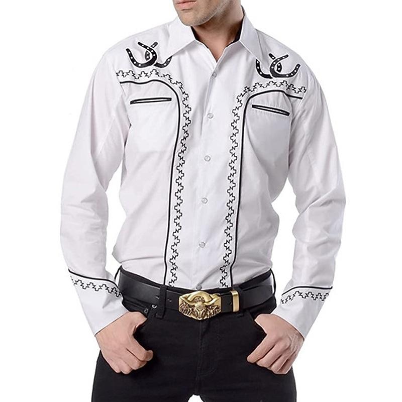 West Cowboy Shirt Cosplay Costume Long Sleeve Casual Button Down Shirt Retro Vintage Men's Top Party Carnival Halloween 1