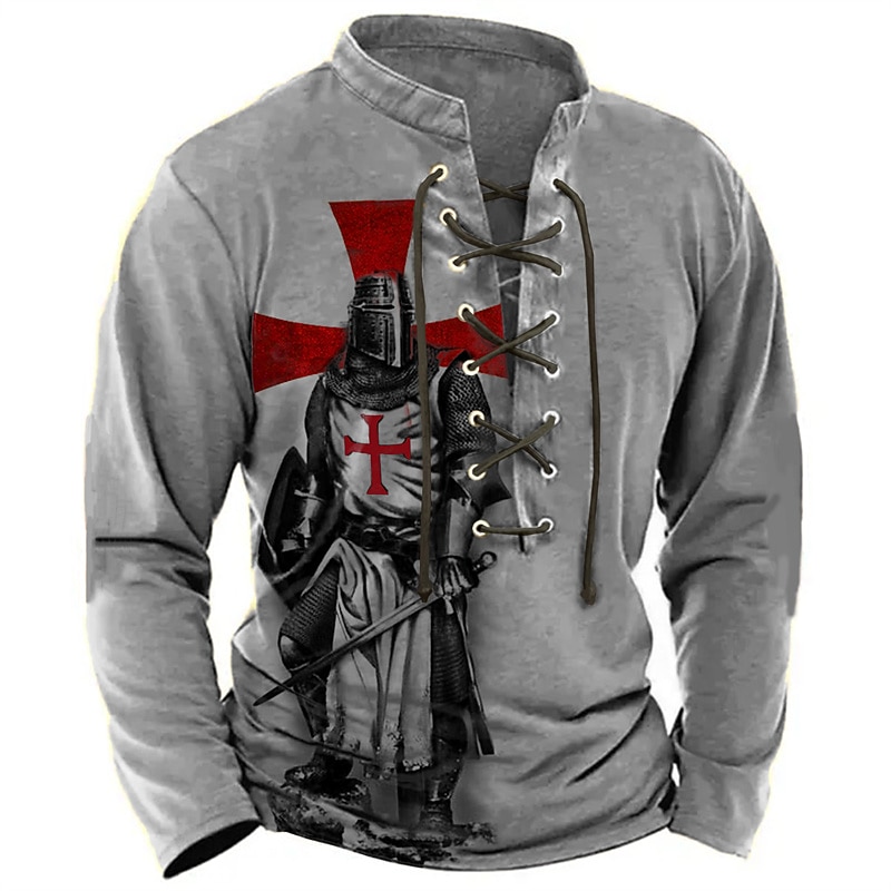More information about Men's Knights Templar Graphic Prints Graphic Tee Vintage Shirt Long Sleeve T shirt Shirt Fashion Designer Casual Outdoor Vacation Daily Wear Blue Brown Green Spring & Fall Clothing Apparel S M L XL