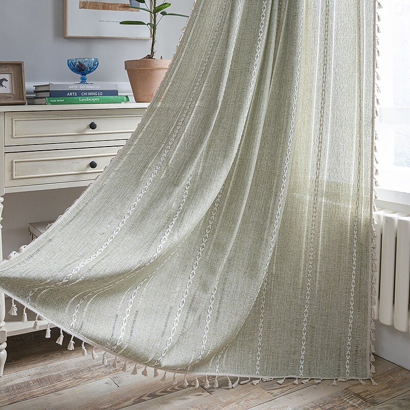$30.99 - Semi Blackout Curtains Green, Pinch Pleat Curtain Panels Cotton Polyester Striped Embroidered 2 Panels Set Curtains for Living Room with Tassels 2025. Shop for cheap Macrame & String Curtains online? Buy at lightinthebox.com on sale today!