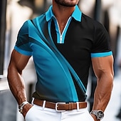 HOT ! Men's Geometic Line Zip Polo Shirts Short Sleeve Polo Shirts Collared Shirts Business Casual Business Athleisure Wear to work Daily Wear 3D Print Summer Blue Purple Green