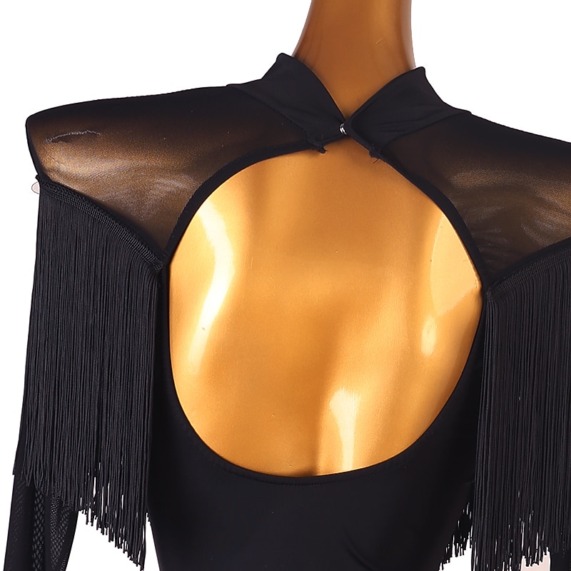 Ballroom Dance Dress Tassel Women's Performance Training Long Sleeve High Chiffon Chinlon Tulle 4