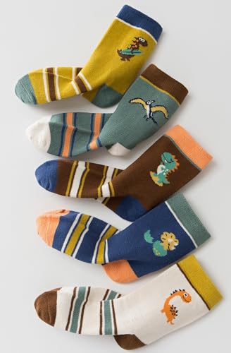 Toddler Boys Cotton Socks Little Kids Big Boys Crew Dress Socks Colorful Striped Cartoon Dinosaur Car socks 5