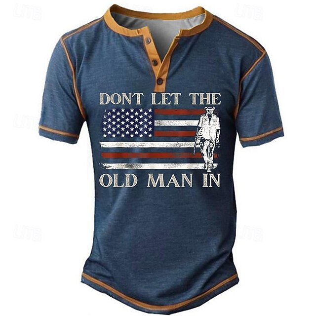 Men's Short Sleeve Henley Graphic T-Shirt - Don't Let The Old Man In American Flag Patriotic Design 6
