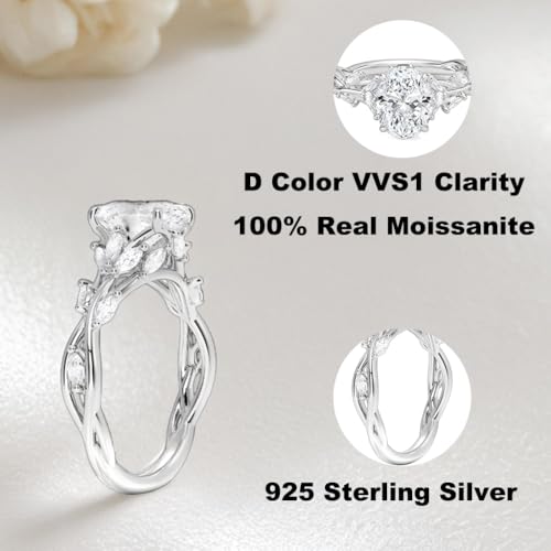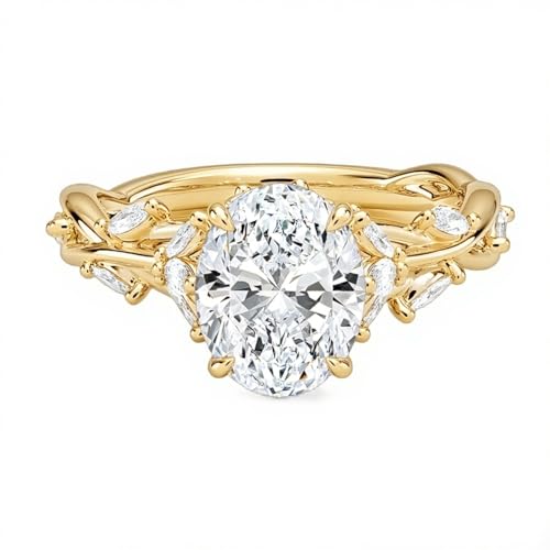 • Moissanites Engagement Rings for Women: Inspired by nature and crafted with love, this moissanites engagement ring features a brilliant oval-cut moissanite in a secure four-prong setting. Delicate marquise-shaped zircon stones blossom on each side, like leaves reaching out from a graceful vine. The twisted band evokes the image of intertwined vines—symbolizing connection, growth, and the journey two hearts take together