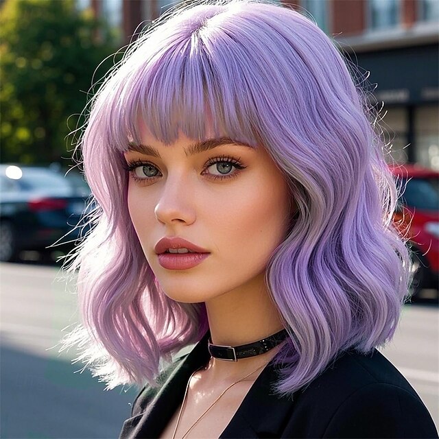 $21.99 - Purple Wig with Bangs Soft Short Bob Wavy Wigs for Women Synthetic Shoulder Length Women's Curly Wigs for Halloween Costumes Cosplay Daily 2025. Shop for cheap Party Wigs online? Buy at lightinthebox.com on sale today!